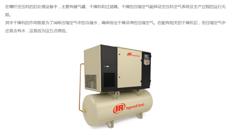 空壓機裝了干燥機,還有很多水是怎么回事?英格索蘭空壓機